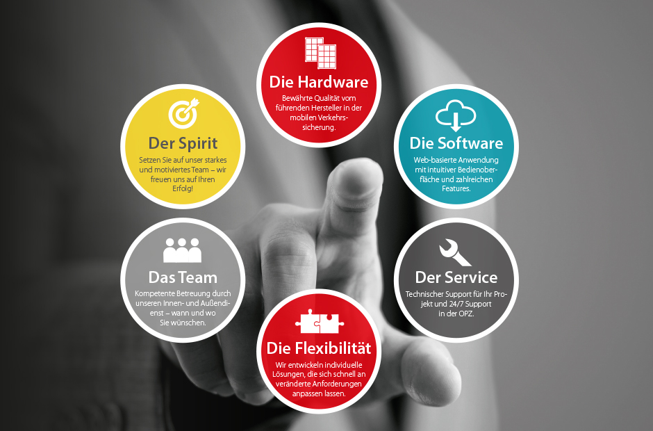 Der zunehmende Straßenverkehr erfordert leistungsstarkes Verkehrsmanagement. Profitieren Sie von unserem Gesamtpaket regelkonformer Lösungen für den mobilen Einsatz.